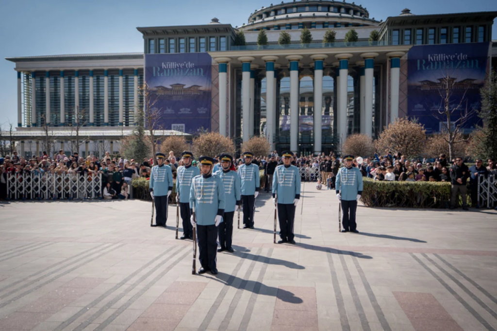 Beştepe Millet Sergi Salonu önünde düzenlenen Cumhurbaşkanlığı Muhafız Alayı Tüfekli Gösteri Bölüğünün gösterisi ise vatandaşlar tarafından büyük ilgiyle izlendi.